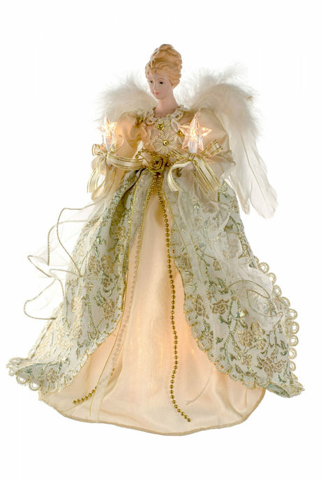 $85.00Unit price /Unavailable14.5" Ivory and Gold Fabric 10-Light Angel Tree Topper with Stars