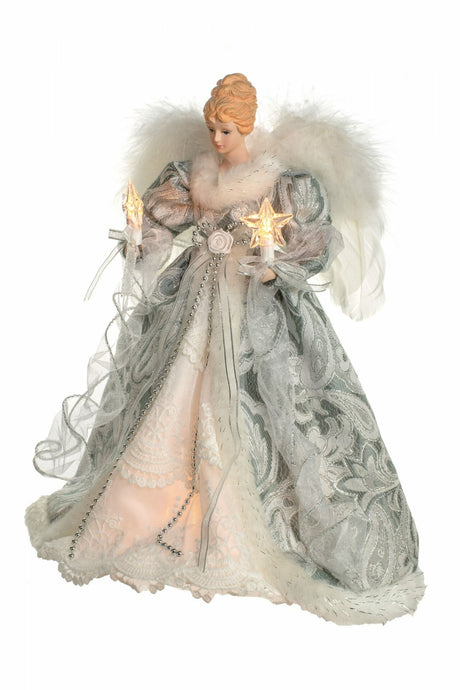 $76.50Unit price /Unavailable14" Silver and White Cloth Vintage 10-Light Angel Tree Topper with White Fluffy Wings